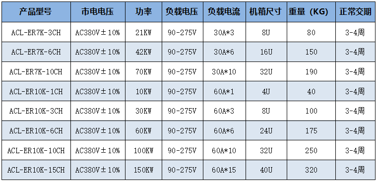 ACL-ER系列回馈式负载,能量可回馈功能,节省了能量,满足客户节能环保的要求;一台电脑软件能够同时管理多台测试设备,并且能够远程控制。支持并网运行。设备在运行老化流程的过程中,可以实现对被老化设备的电能回馈至电网;软件系统具有简洁、明了的图形化控制界面(包括本设备和被测设备的状态、控制信息等);设备提供测试暂停接续功能。在发生异常断电情况导致设备供电故障而中断测试时,再次上电启动软件会自动接续断电前的测试,进行接续测试设备可以与被测设备进行通信,根据测试工步自动控制被测设备的参数,无需人为干预。